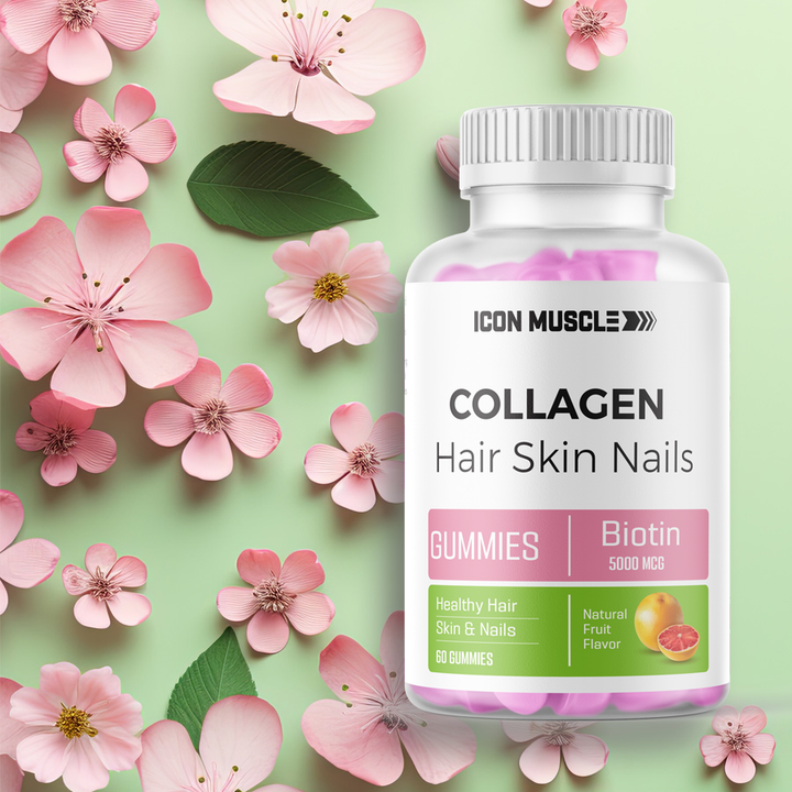 As we age our bodies produce less collagen. Icon Muscle Collagen Gummies are specially formulated to improve skin elasticity & minimize deep wrinkles. while assisting with the skin's tone and firmness.