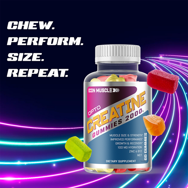 This updated version of the original, OPTO CREATINE GUMMIES 2000, are deliciously soft, easy to chew, and contain enough pure monohydrate creatine to support muscle size and endurance. Just 2 gummies provide you with 2000 mg of high-quality creatine!